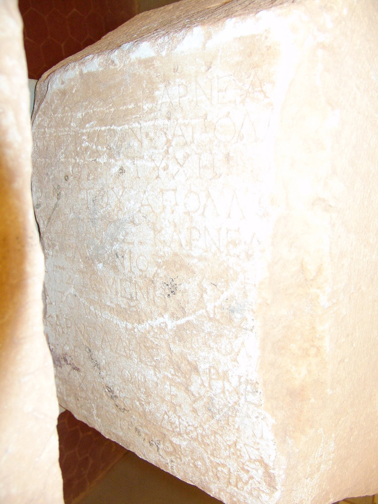Bibliography: SECir, 1961-1962, 201a with illustration, fig. 147 (from the photograph), whence Robert, Bulletin Épigraphique, 1964.582, Reynolds, 1972, 46; Reynolds, 1976, 6.a and pl. LVIII, whence SEG 27.1128; mentioned Kenrick, 2013, 285.