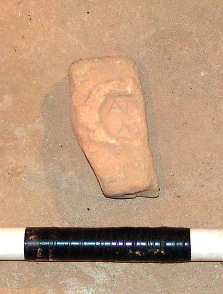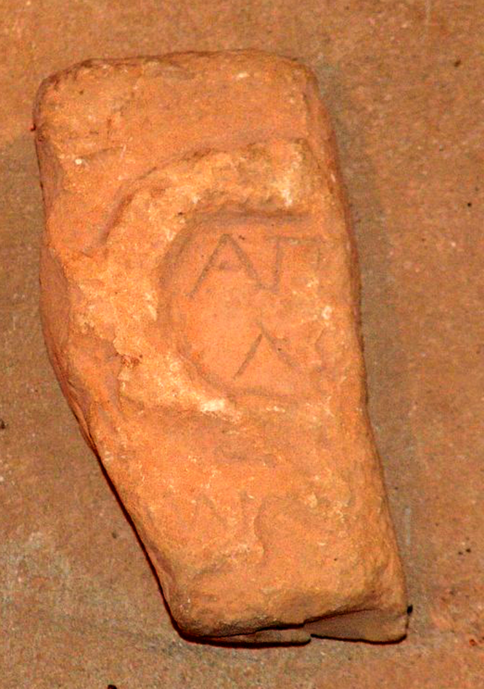 Text: Inscribed on one face within a circle in relief which is flanked to the left (the