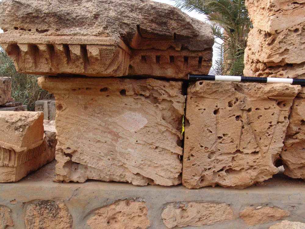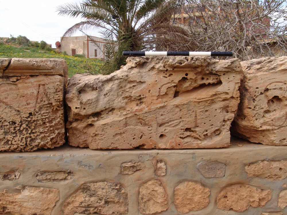 a. These blocks were disposed in seven bays interrupted by pilasters. It is clear from blocks ii-iii that local taste was not offended when pilasters interrupted words (perhaps because the population was essentially Greek-speaking and did not pay attention to the alien Latin).