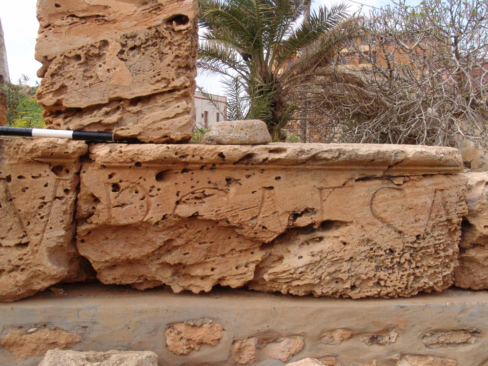 It is in principle possible that the emperor's name was in the nominative case and if so the monument was his gift (Domitian was active in Cyrenaica and attested as donor of the Nomophylakeion at Cyrene, C.92); or in the dative, and if so it was dedicated to him; or in the ablative, and if so it was dated by reference to him and his titles. The use of Latin and to some extent the prominence given to the emperor's name on the façade seems to me to recommend the first possibility. Its weakness is that at the date of the inscription the name Germanicus normally follows Augustus in Domitian's title. It would indeed be easy to fit two more letters after AVG in the space available in Bay 3, but the minimum needed is three (GER) and four is more normal (GERM) - all of them broad; the result would be remarkably crowded. This aesthetic argument is not conclusive of course - the crowding may have occurred; but Reynolds prefers to guess that the name was omitted as in ILS 8798 of 93-4. There is, on the other hand, no difficulty in fitting Germanicus into a reconstruction which uses the dative or the ablative cases but it is necessary to find an explanation for the surprising use of Latin, which certainly seems to indicate some official intervention.