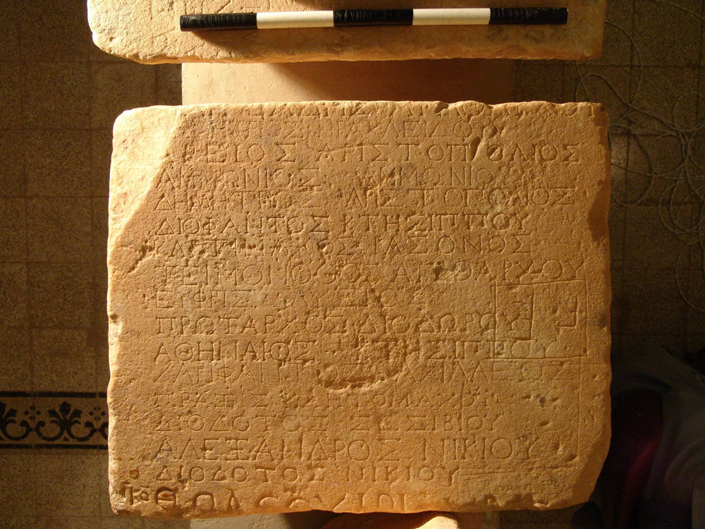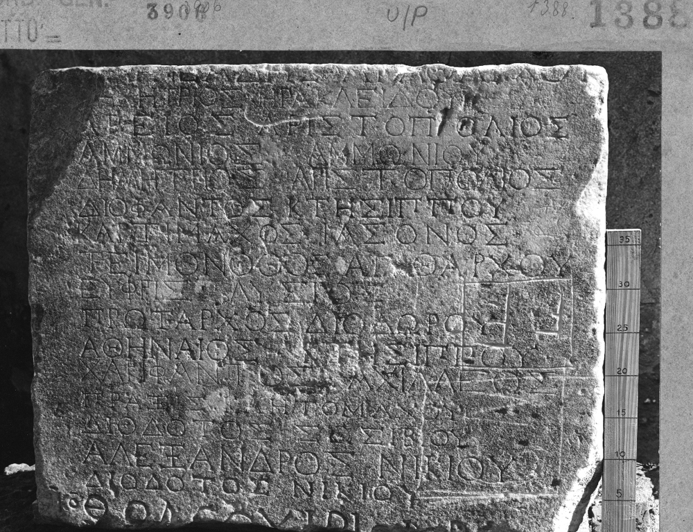 Sosibios, Alexandros (scil. son) of Nikias, Diodotos (scil. son) of Nikias, P(oplios) Ko( . . . ) (i.e. P(ublius) Qu-) Euphris (scil. son) of Kres[- . . .