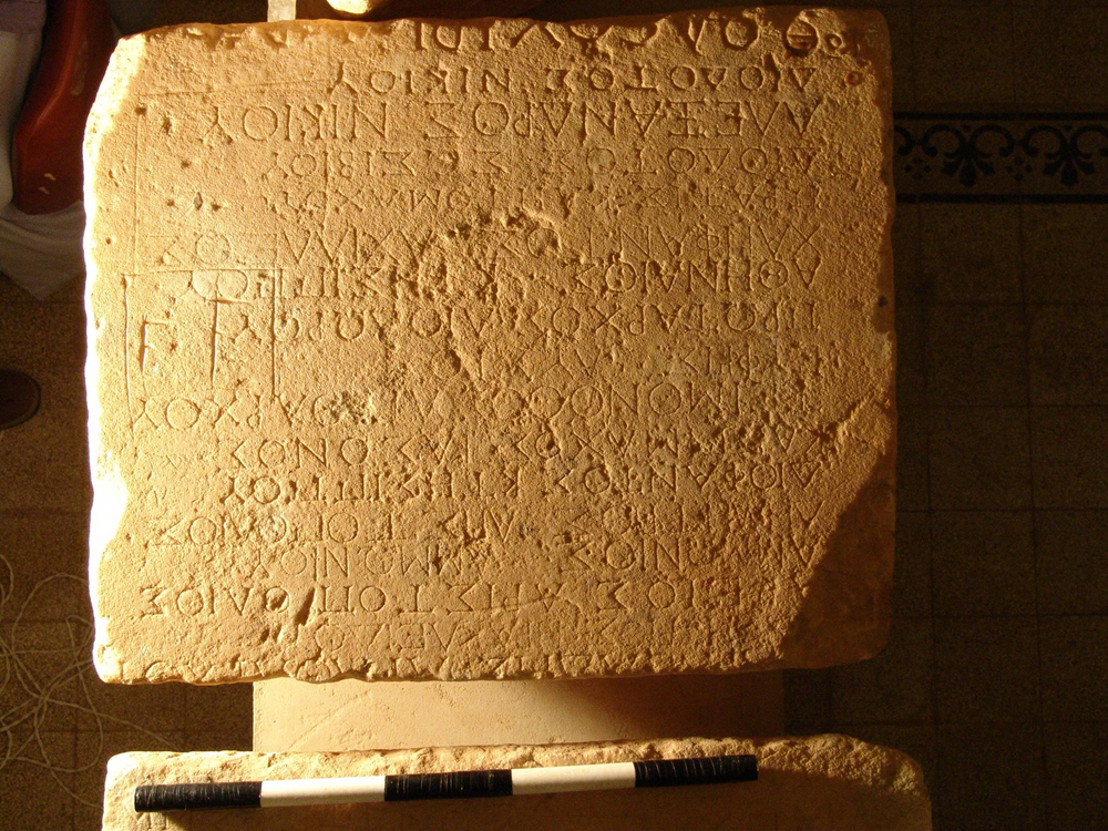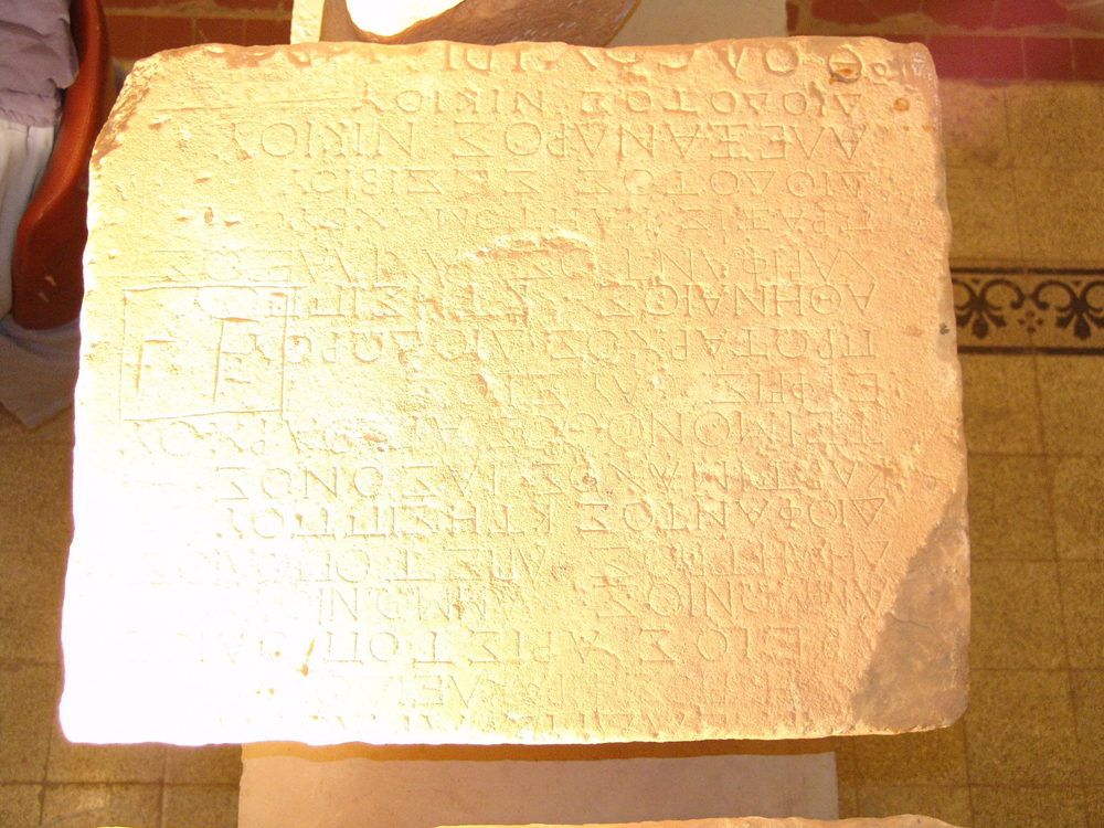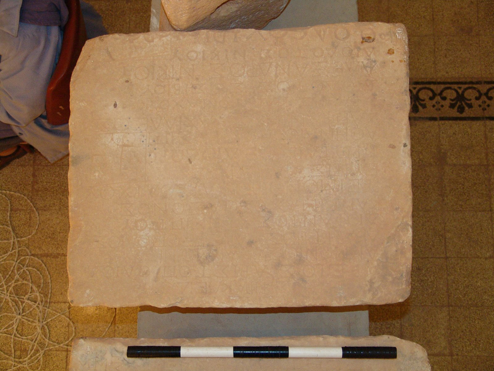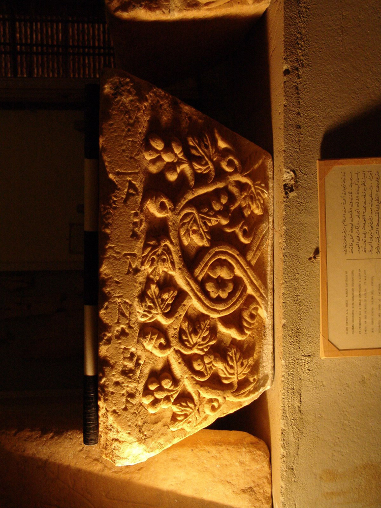 sixth century church, with a relief of a vinescroll carved on the reverse face