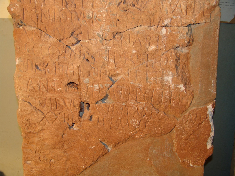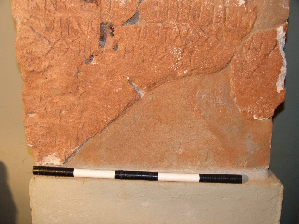 Text: Inscribed on one face which was already pitted with holes when the mason worked