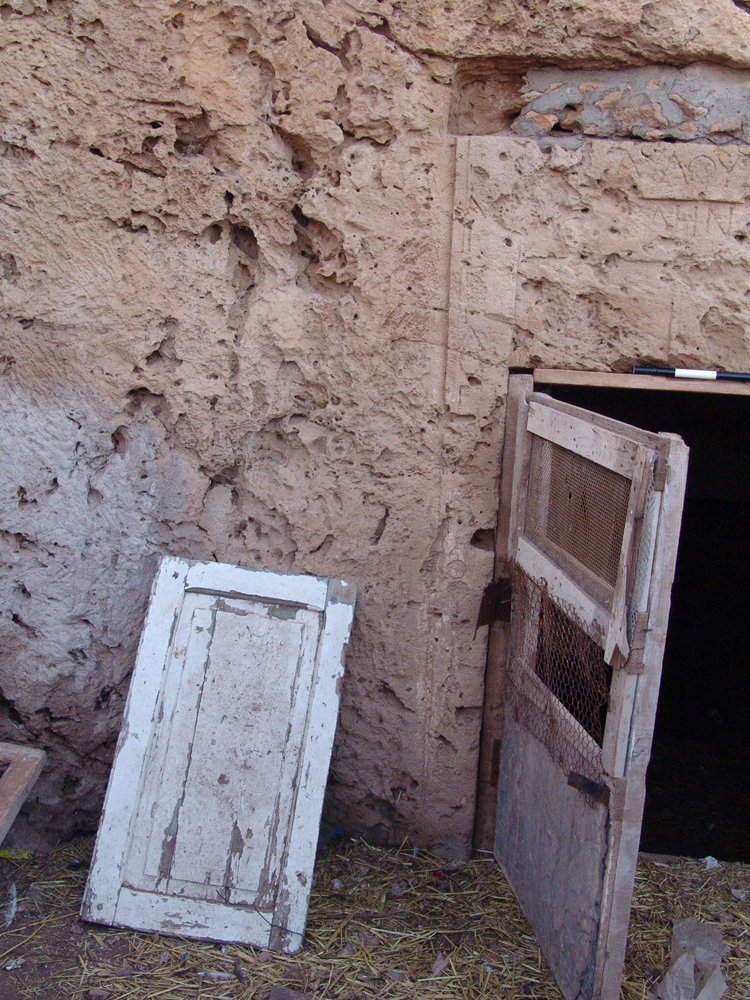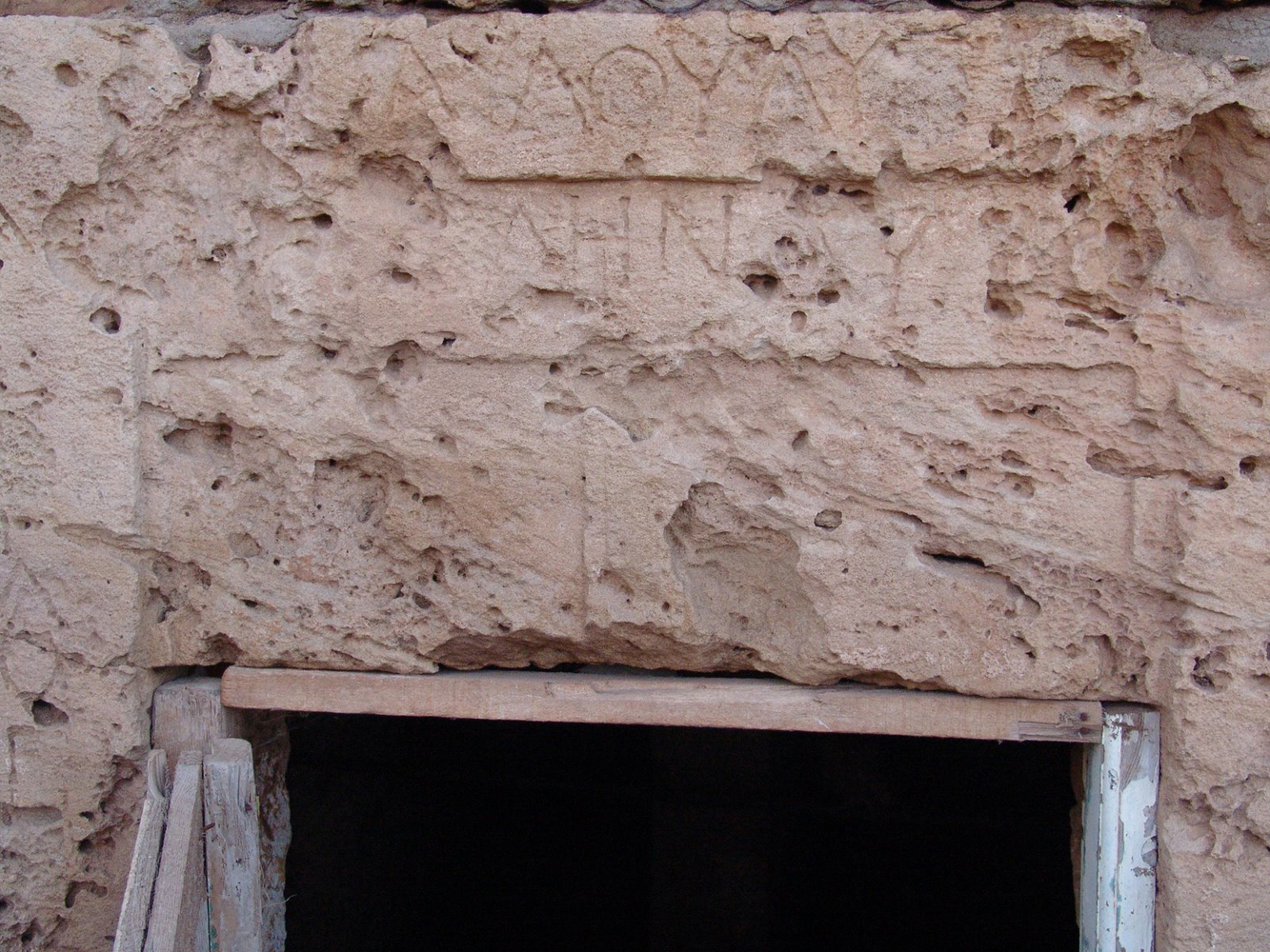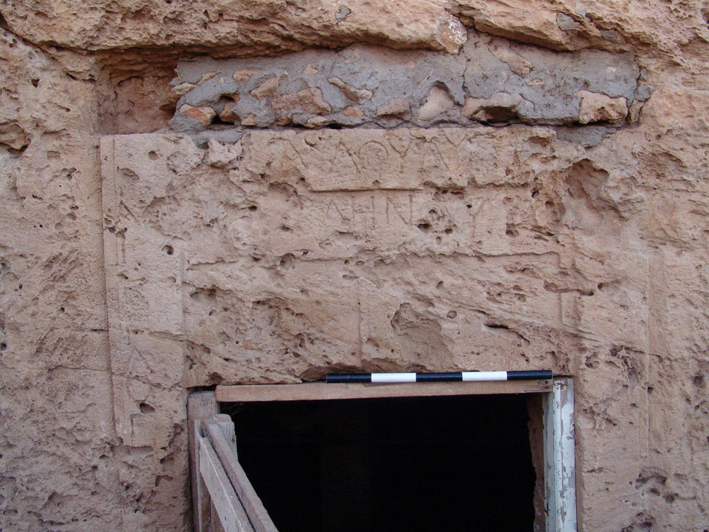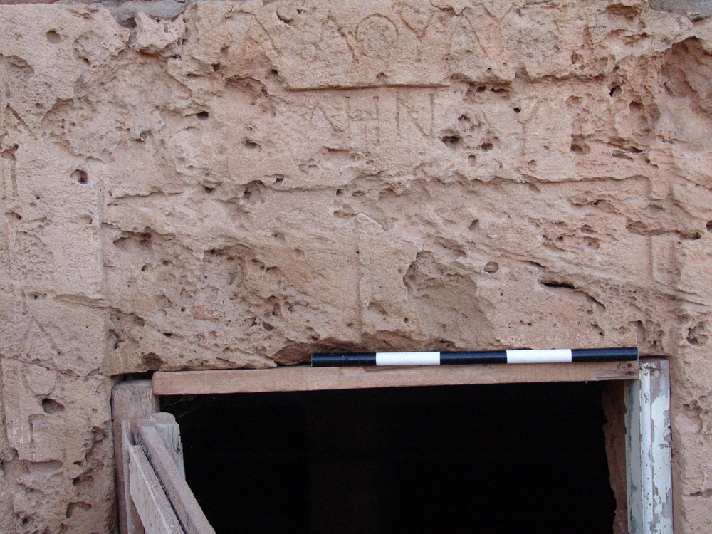 Text: Inscribed on the door mouldings, i. above and ii. to the left of the door.