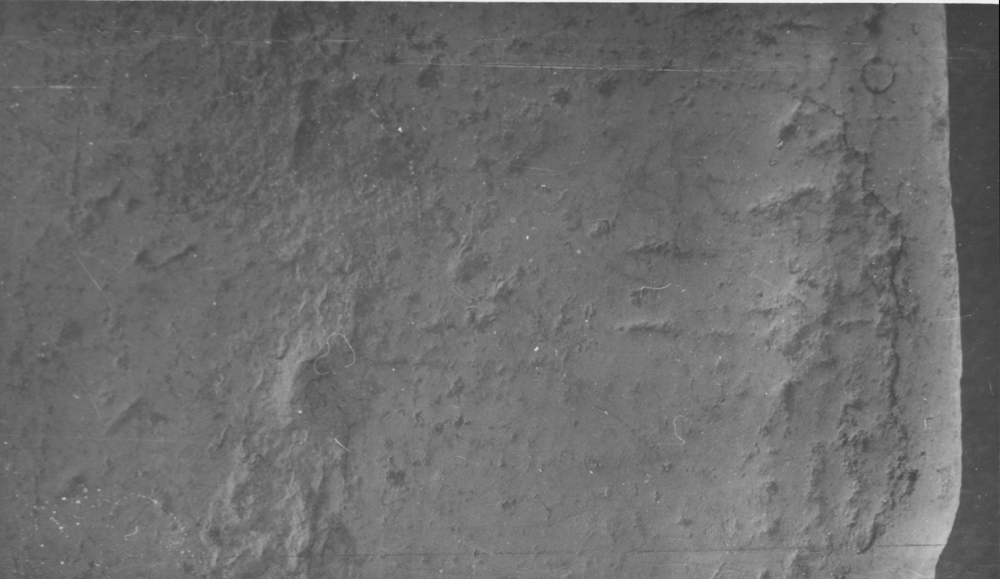 Text: Inscribed on one face which is chipped in the lower part, badly worn, especially the central area,
