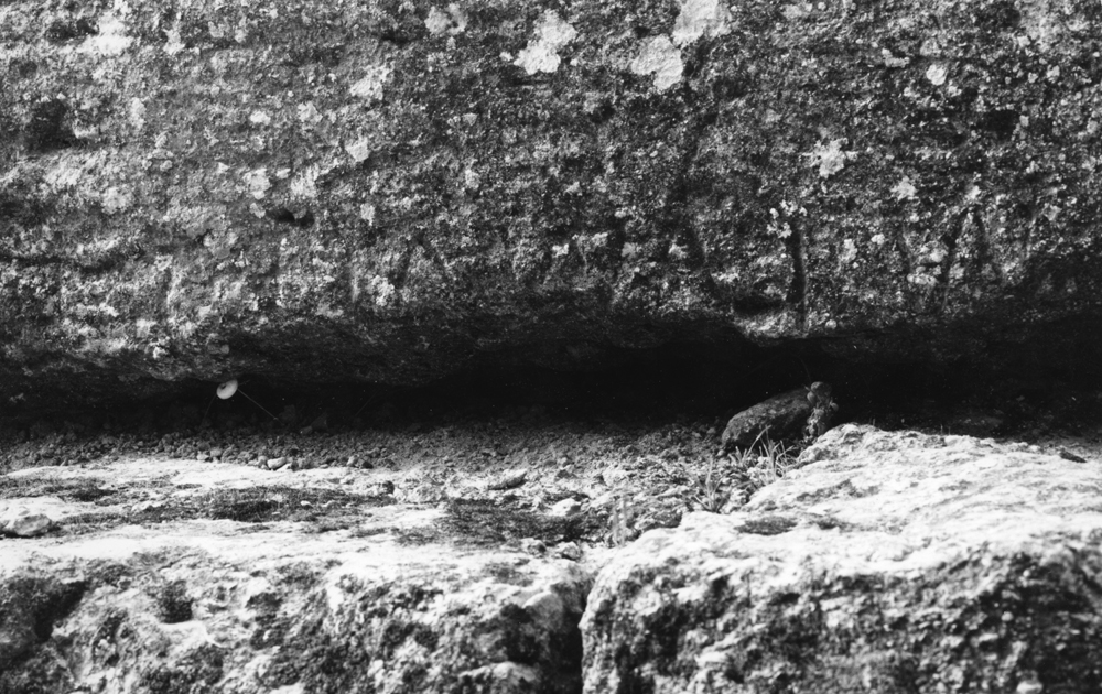blocks or parts of blocks, presumably from two courses of a wall, all badly damaged