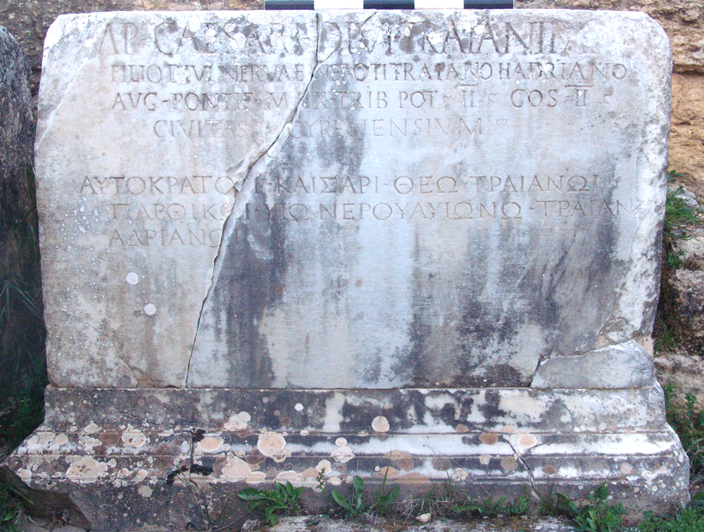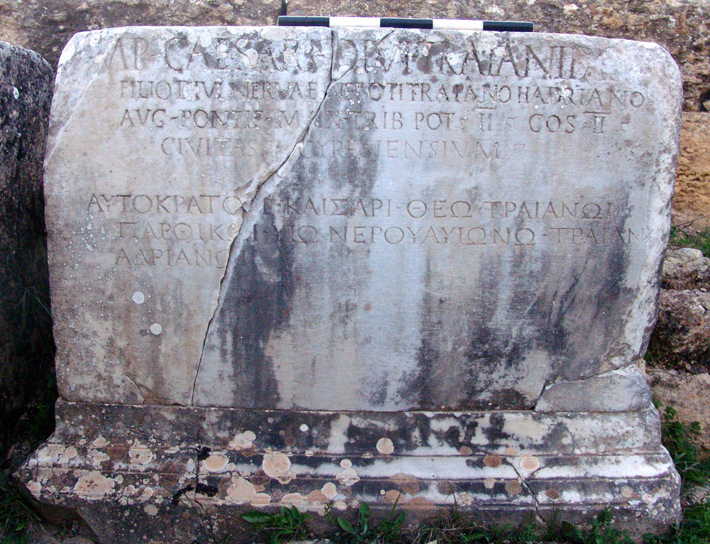holding tribunician power for the second time, consul for the second time, the city of the Cyreneans (scil. dedicated this).