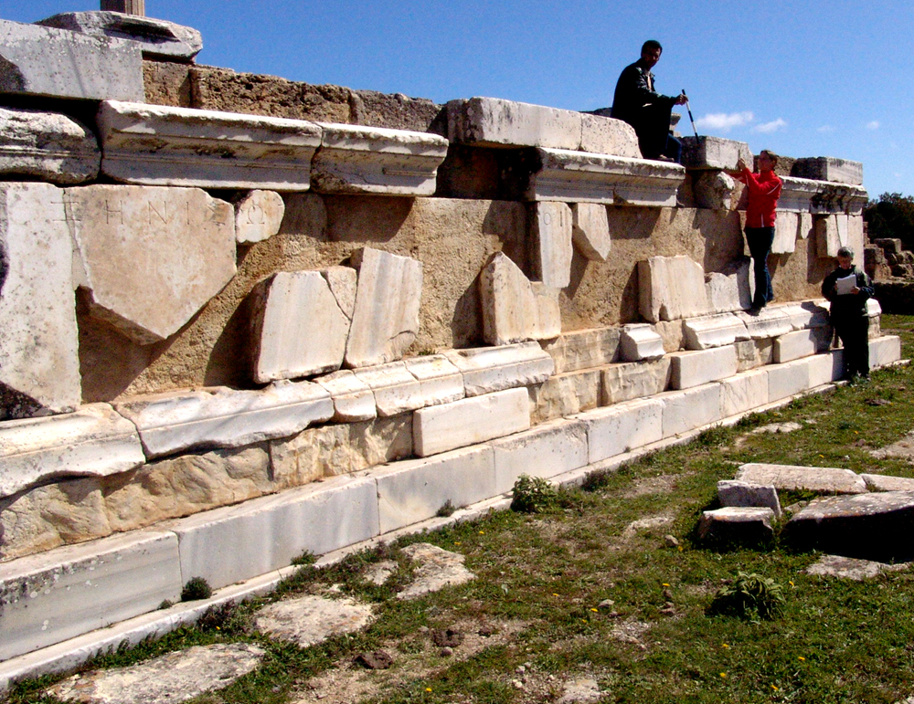 For the earlier text, see on IGCyr 99900; see also C.120. Stucchi believes that this block stood above the panelling of the altar.