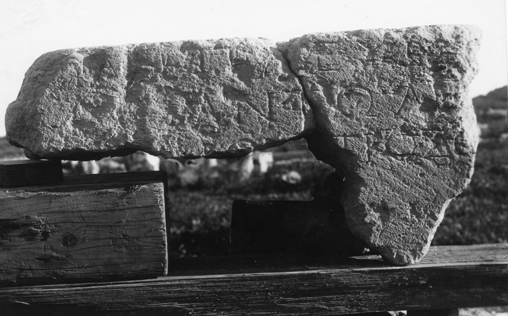 Description: Two adjoining fragments from ? the upper part of a limestone block, dimensions (together):