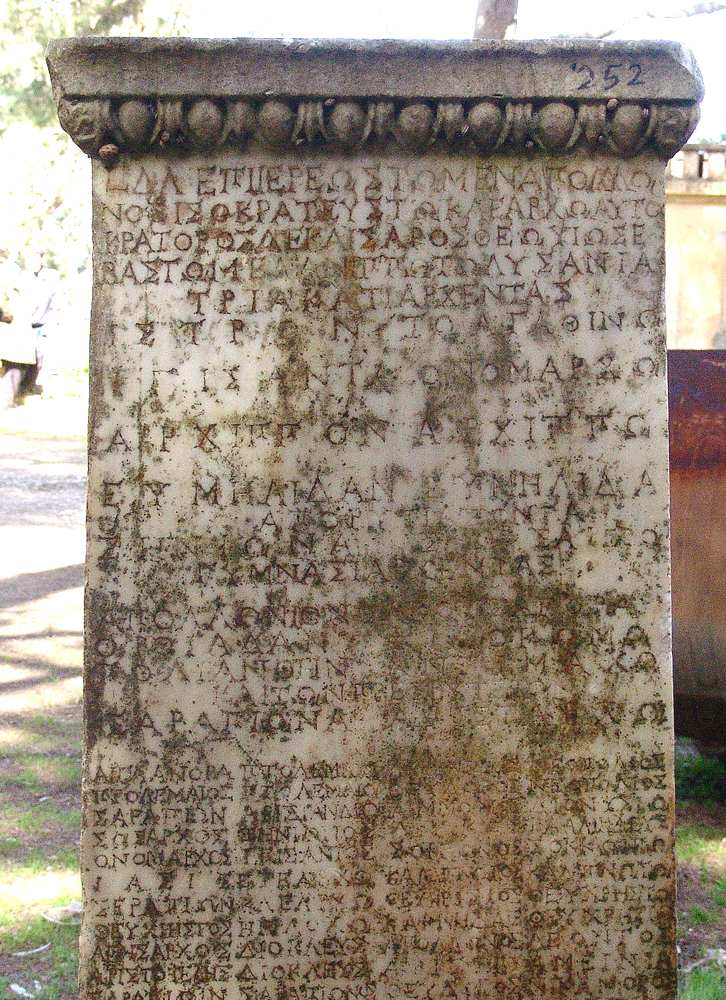 (scil. son) of Hyrathis, Aristomachos (scil. son) of Sogenes, Barthybas (scil. son) of Barthybas, Dionysios (scil. son) of
