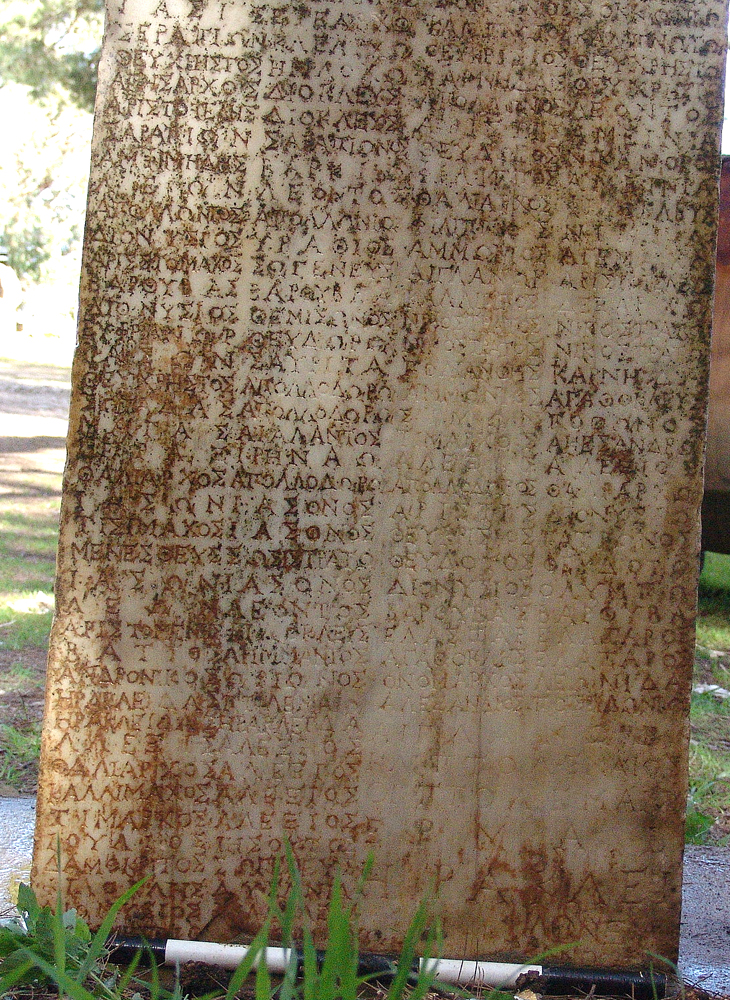 Bibliography: Pugliese-Carratelli, 1961, 7, p. 20f, figs. 13-16, whence Robert, Bulletin Épigraphique, 1962.363, and, with observations by J.M. Reynolds, SEG 20.741, PHI 324497, Applebaum, 1964, 291f., whence Robert, Bulletin Épigraphique, 1967.680; (part) Lüderitz-Reynolds, 1983, 7.