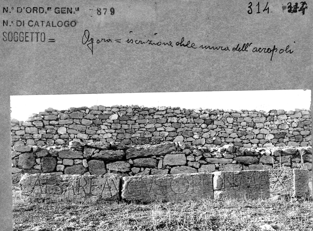 Essendo imperatore Cesare Augusto pontefice massimo - Il proconsule Quinto Lucanio Proculo - provvide a restaurare le mura dell'acropoli.