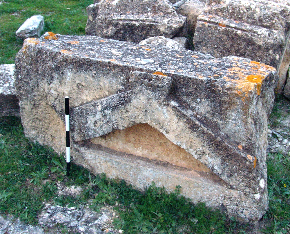 The block was perhaps brought into the Basilica during the Hadrianic reconstruction (see C.21) and probably served as a pediment over one of the niches in the apse. There is no clue as to its original position.