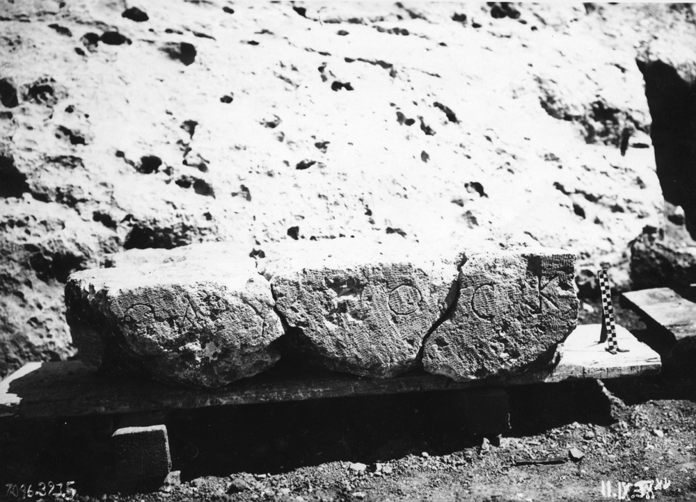 Description: Fragmentary limestone blocks. a. Now broken and partly lost. b. w:
