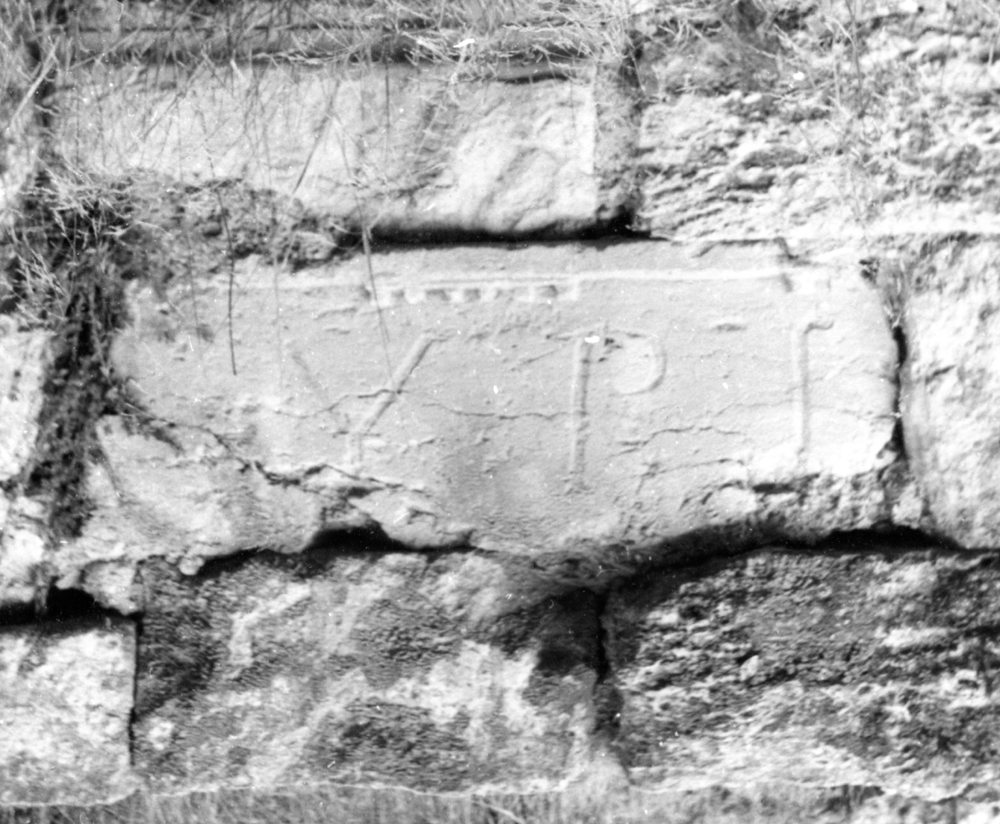 re-used upside down in the retaining wall of the Valley Street.