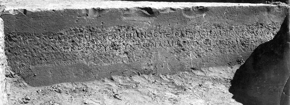 M(arkos) Ioulios Kokkeianos (i.e. M(arcus) Julius Cocceianus) Pythagoras Plato set up the Dioscuri with the little temple, from his own resources.