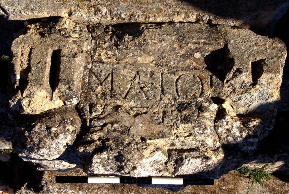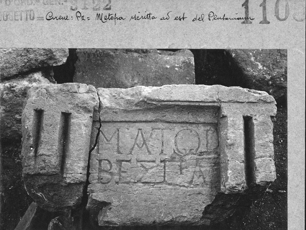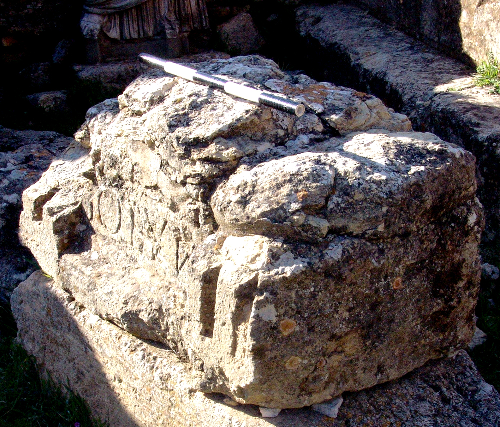 Text: Inscribed on the metope; the face has deteriorated badly since discovery.