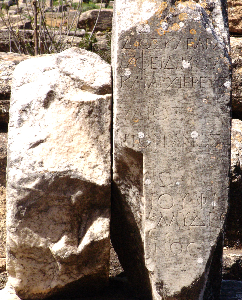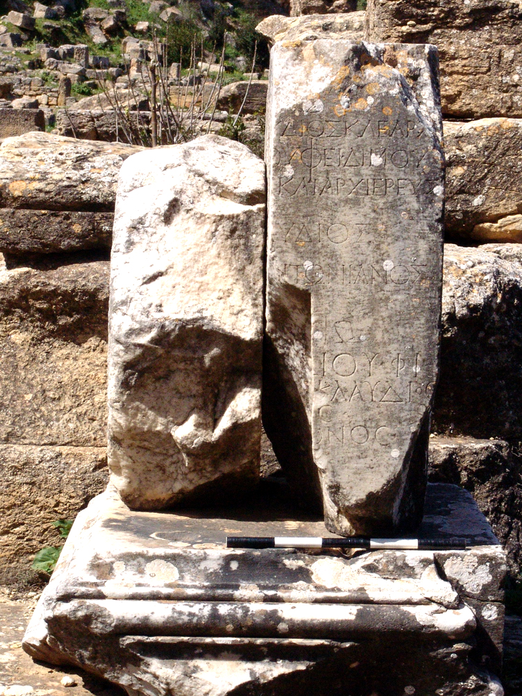 . . . priest ] of Apollo; [?Year ? . . . Ti(berios) Kla]udios (i.e. [Ti(berius) Cla]udius) Klearchos, [son of Ti(berios) Kla]udios (i.e. [Ti(berius) Cla]udius) Pheidimos, [priest] and high-priest; {Y?Year ? . . Ti(berios) Kl]audios [ . . . A]ntonianos (i.e. [Ti(berius) Cl]audius [. . . A]ntoninianus); [ . . .-]kios; [?Year ? . . . Ti(berios)] Klaudios (i.e. [Ti(berius)] Claudius) [ . . . son of Ti(berios) Klau]dios (i.e. [Ti(berius) Clau]dius) Phi[- . . . priest] of Apollo.