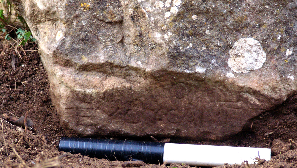 The inscription had been damaged when rediscovered by Thorn in 1996.
