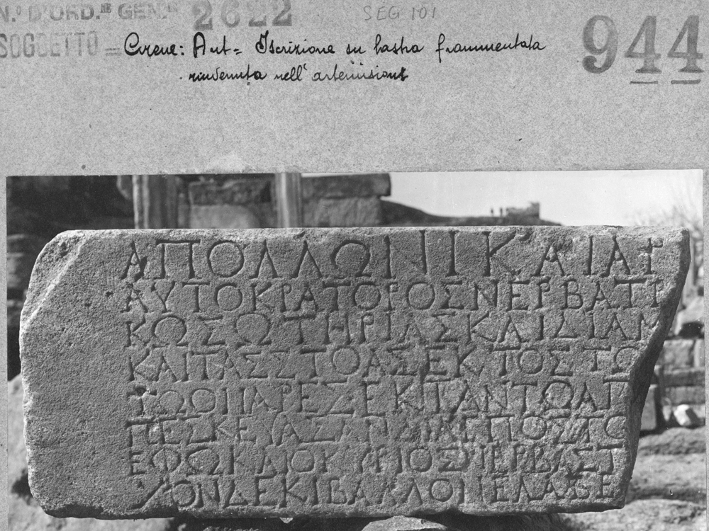 Bibliography: Oliverio, 1929, 1, 113f., fig. 3w, whence AE 1929.8, SEG 9.101, PHI 323955, with Robert, 1940a 12, whence Robert, Bulletin Épigraphique, 1941.179; discussed Oliverio, 1931 52 Romanelli, 1943, 104, Serafini, 2014, 107-109; mentioned Kenrick, 2013, 207.