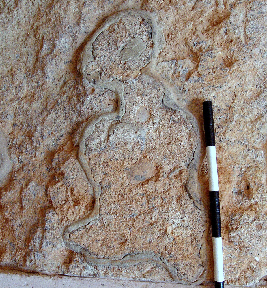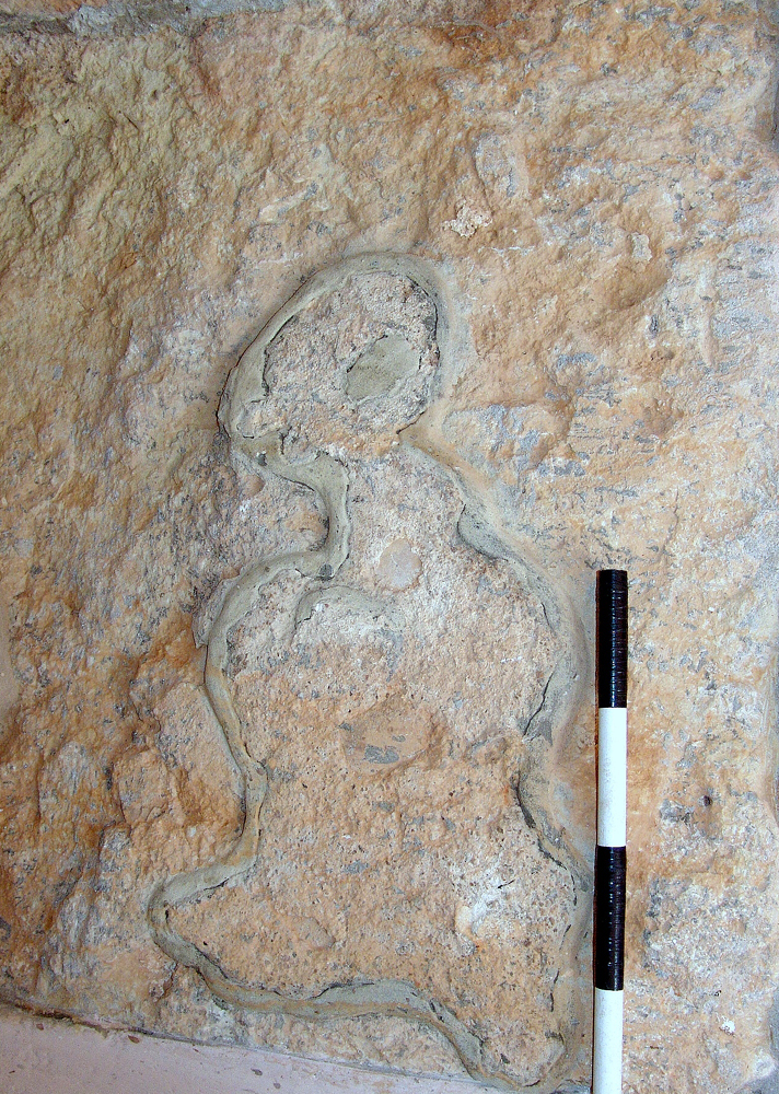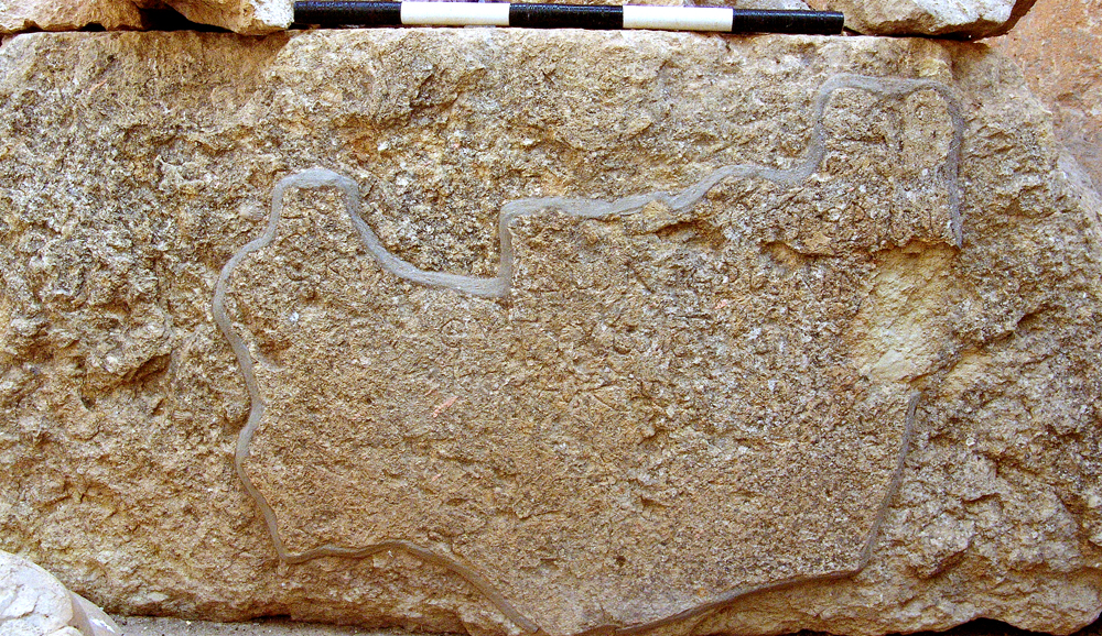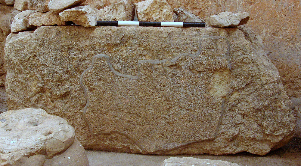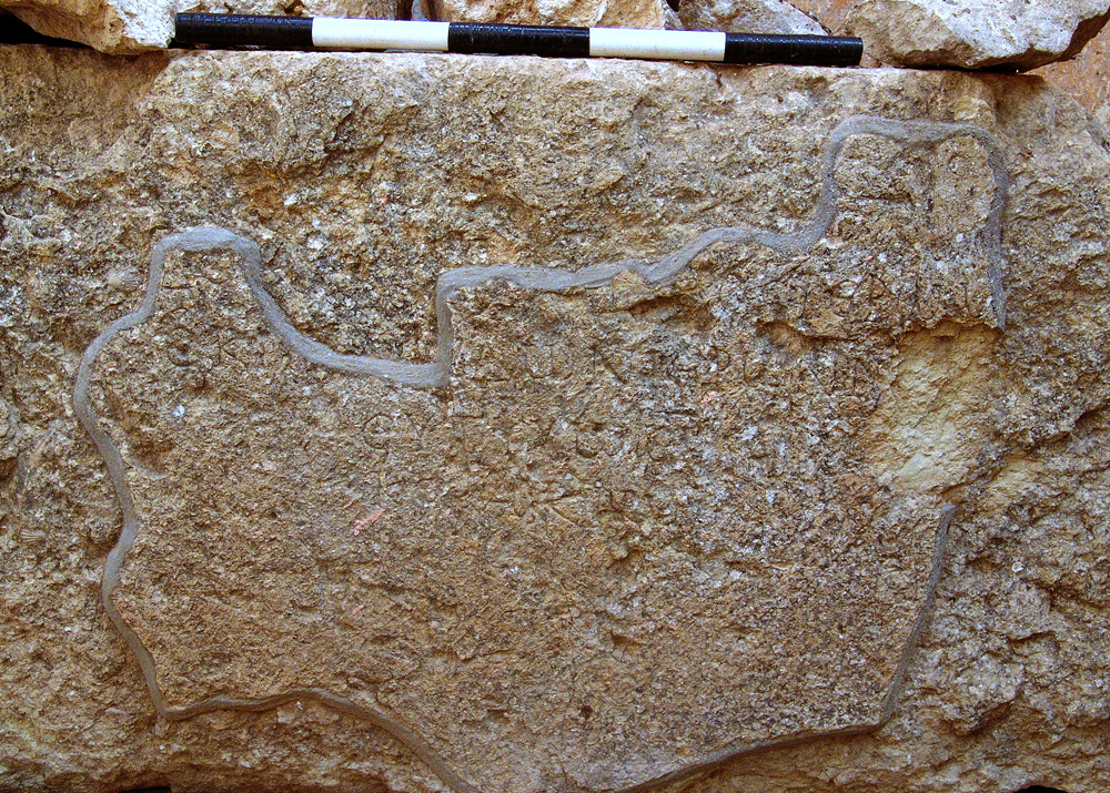 Description: Limestone block, broken at the right side