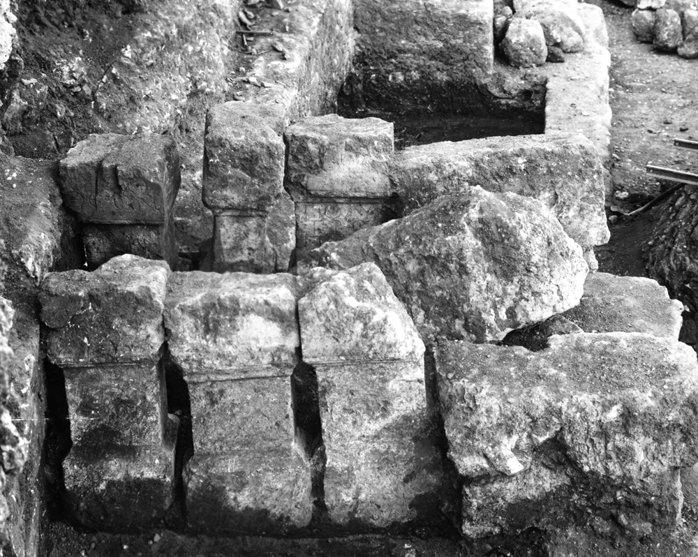 collected together, the inscriptions were turned face inwards, near the rock face, beside the Byzantine lime kilns.