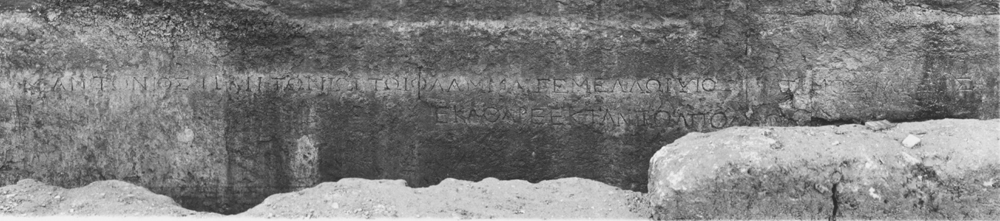 M(arkos) Antonios Maximos(i.e. M(arcus) Antonius Maximus), son of M(arkos) Antonios Gemellos (i.e. M(arcus) Antonius Gemellus) (scil. son) of Phlamma (i.e. Flamma), priest, cleansed (the tank) from the resources of Apollo.