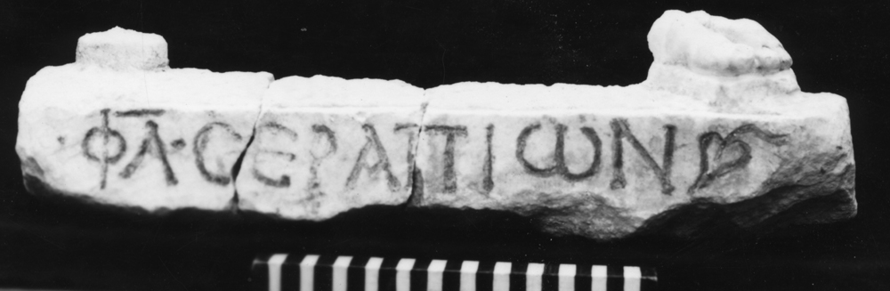 Description: Front of a rectangular base of white marble, probably Greek island,