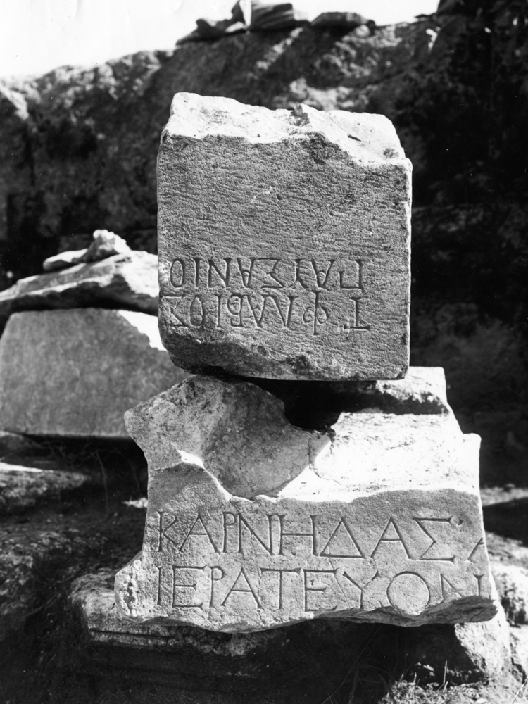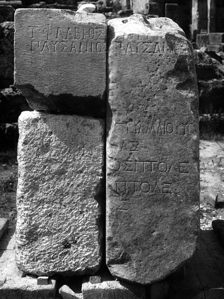 1: Omitted by Robinson, Oliverio2: [Τ(ίτου) Φ]λ̣α̣β̣ί̣[ου] : [Σ]αβεινο[ς ὑὸς] SECir, 1961-1962