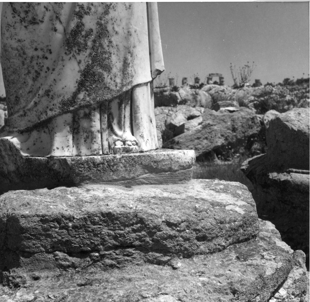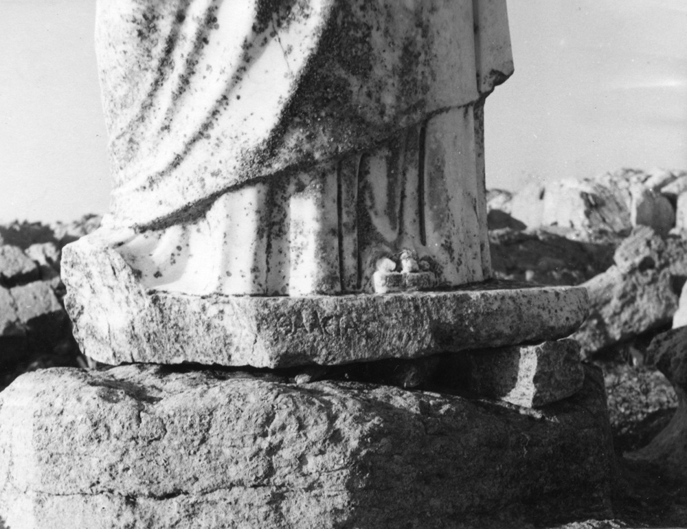 One of a set of the nine Muses for which a number of other bases survive but are uninscribed; by contrast a further group, found in Theatre 3, was professionally labelled: C.24, C.25, C.26, C.27, C.28, C.29 . If the building is correctly regarded as the official residence of the gymnasiarch (see C.57), the Muses were presumably chosen because of their connexion with παιδεία. .
