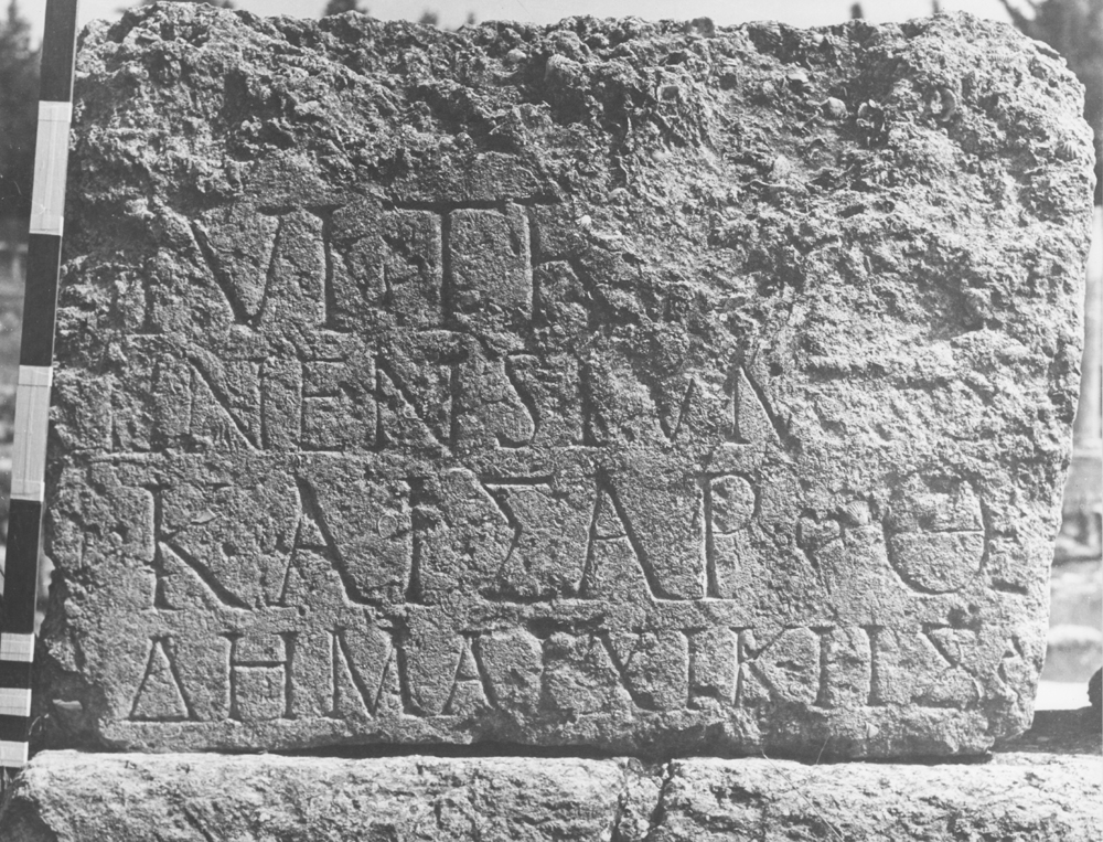 [μέγιστος] δημαρχικῆς [ἐξουσία]ς̣ τὸ β̣´ [ὕπατος τὸ β´ τ]ῇ̣ πόλει ((leaf)) τ̣ὸ ( vac. 1) Και̣[σάρειον? ἐν τῶι Ἰουδαικῶι