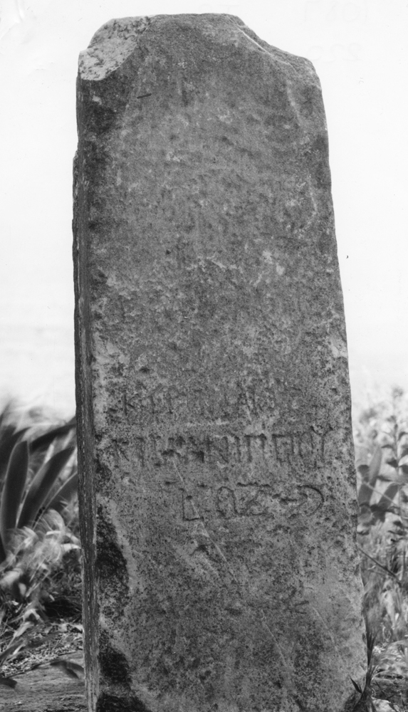Text: Inscribed on one face. On the upper half of the stone their appear to be lines of inscription, but the surface is much worn