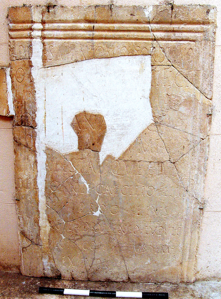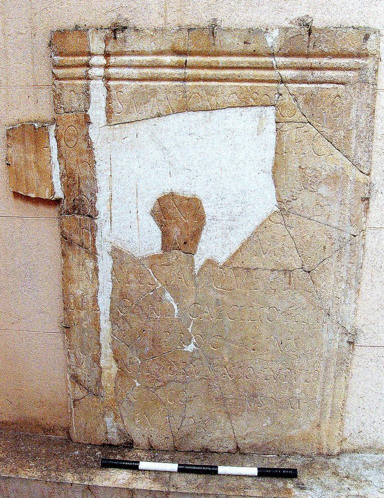 reused face downwards, as a paving slab; found in 1934. Some fragments seem to have been lost since discovery.