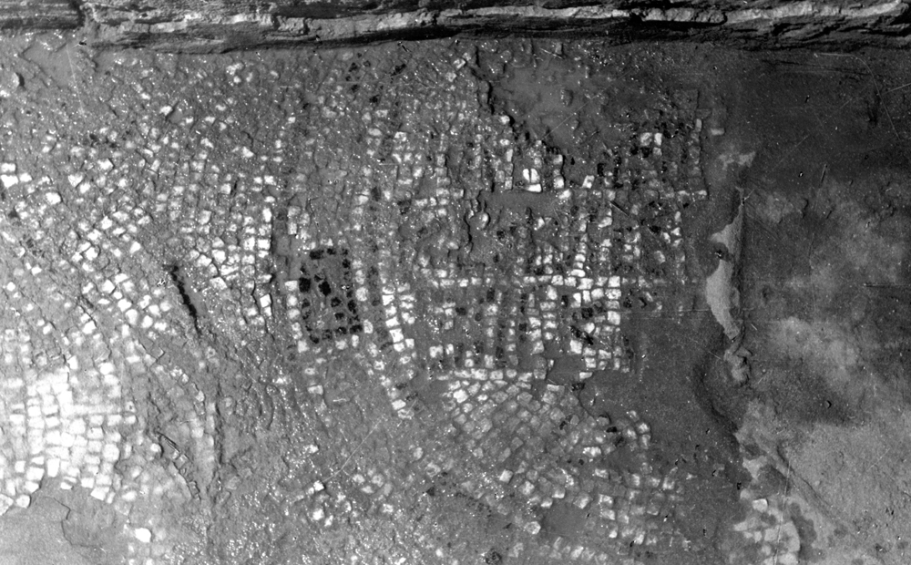 Text: Mosaic lettering in a roundel (internal diameter c.0.56);