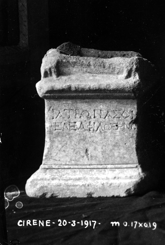 Seen by Dobias-Lalou in former Sculpture Museum at Cyrene in 1977
