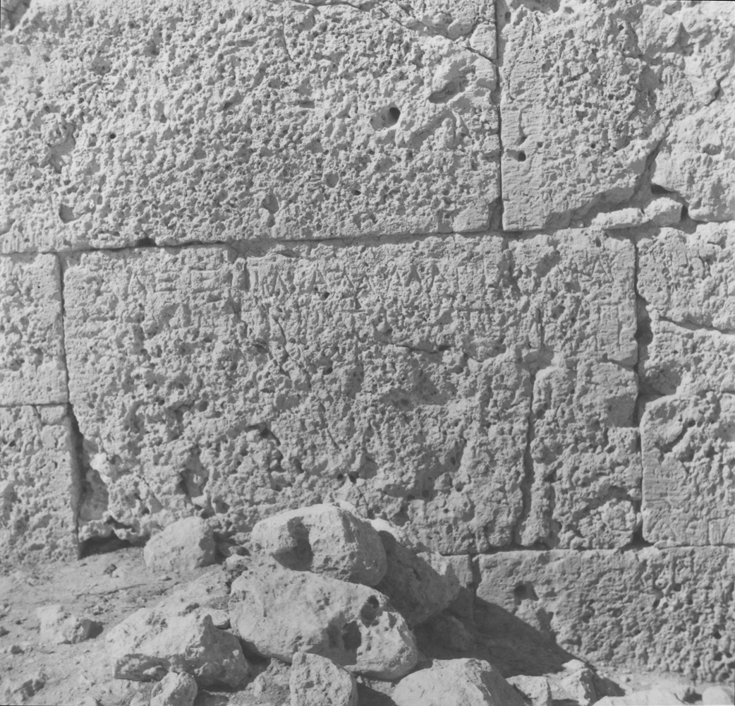 Description: Ashlar blocks in the wall of the fortress; other blocks are inscribed with M.56,