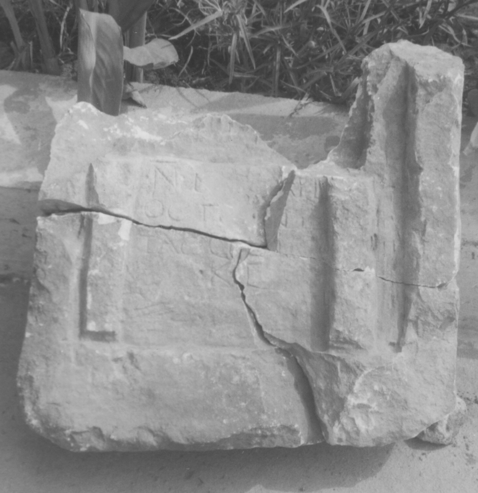 Text: Inscribed on one face within a panel defined on either side by a plain moulding.