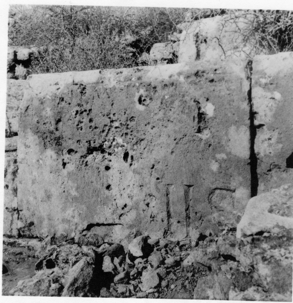 reused upside down in the west wall of the large reservoir, north-east of the Square of the Cisterns;