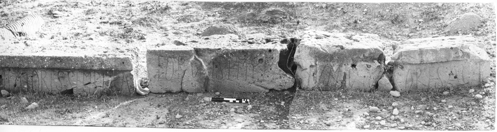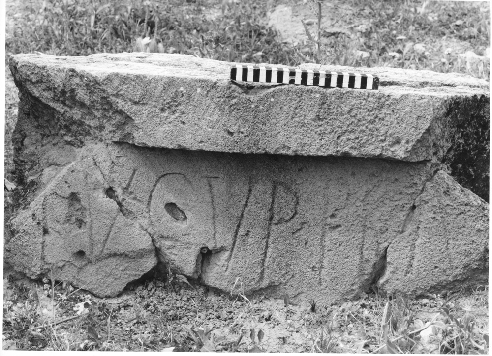 Text: Inscribed on one face ; a-e are simply moulded above, f and g are plain and must have come from a lower course.