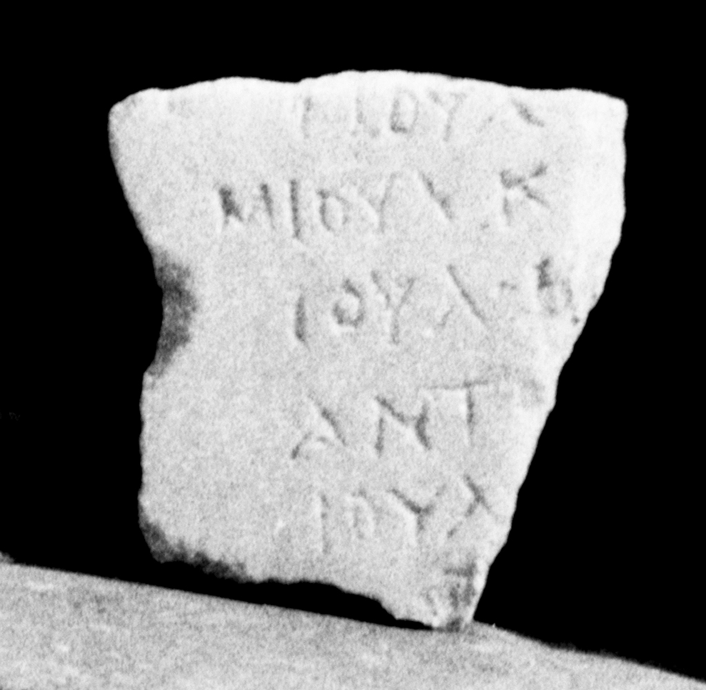 G(aios) Ioul(ios) (i.e. G(aius) Jul(ius)) [ . . . ] M(arkos) Ioul(ios) (i.e. M(arcus) Julius) Ki[ . . . ] Ioul(ios) M[ . . . ] Ant[onios . . ] Ioul(ios) [ . . .