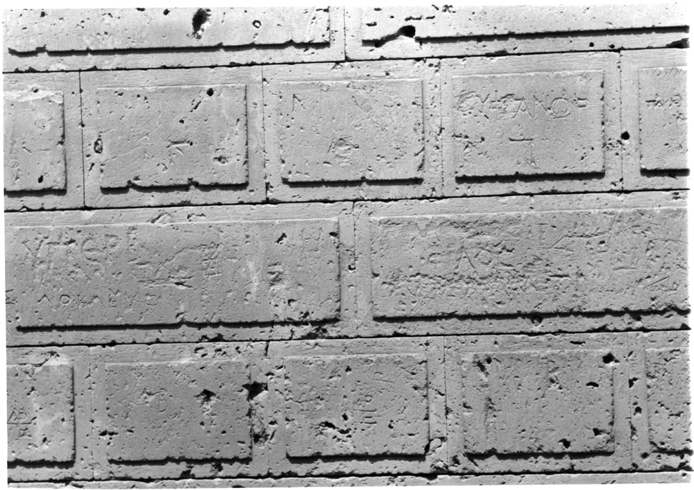in situ in the wall of the West Gate, inscribed with graffiti in their present positions.i. On the upper inset of the first