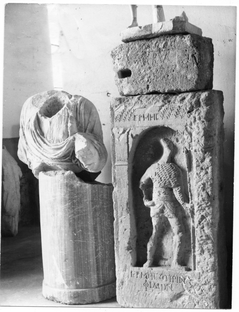 0.22); the face is largely occupied by a round-headed niche with flanking columns in relief, the right one very damaged; within