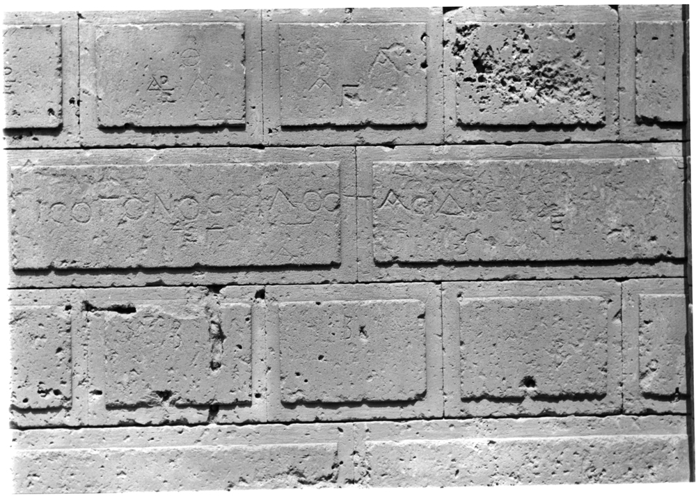 inscribed with graffiti in their present positions.i. On the raised central area of the first block; ii. On the raised central