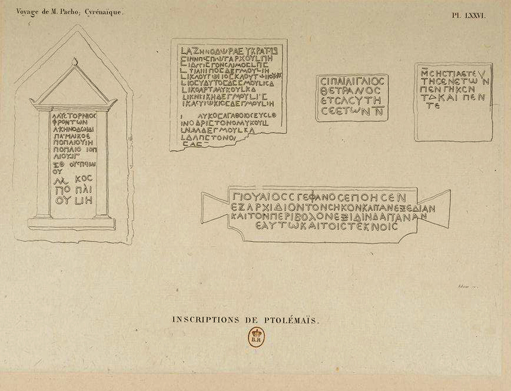Bibliography: Pacho, 1827, LXXVI, whence CIG, Vol.III, 5240; Smith-Porcher, 1864, 67, pl.54, no.6 drawing only; Masson-Reynolds, 1978, 19 copy by M.Guirand (1895) mentioned.