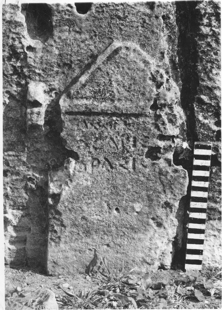 Text: Inscribed on the façade on a raised triangular headed stele (w: