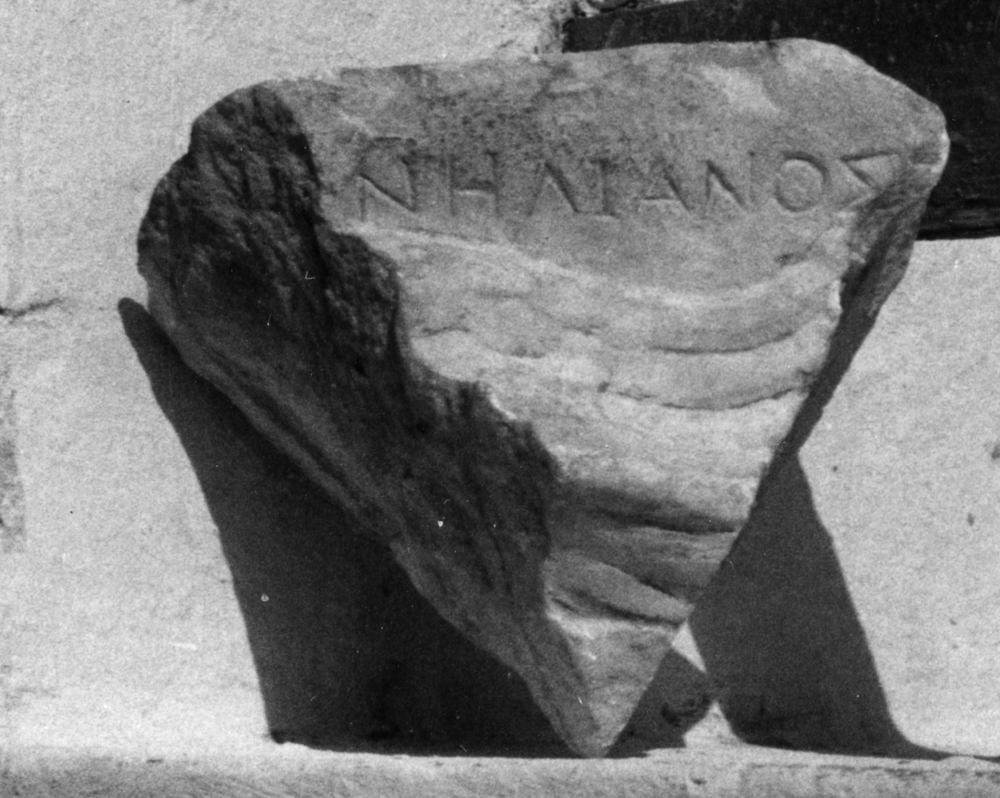 Remains of the relief decoration below; the top appears to be worked, which may indicate that the piece has been cut down