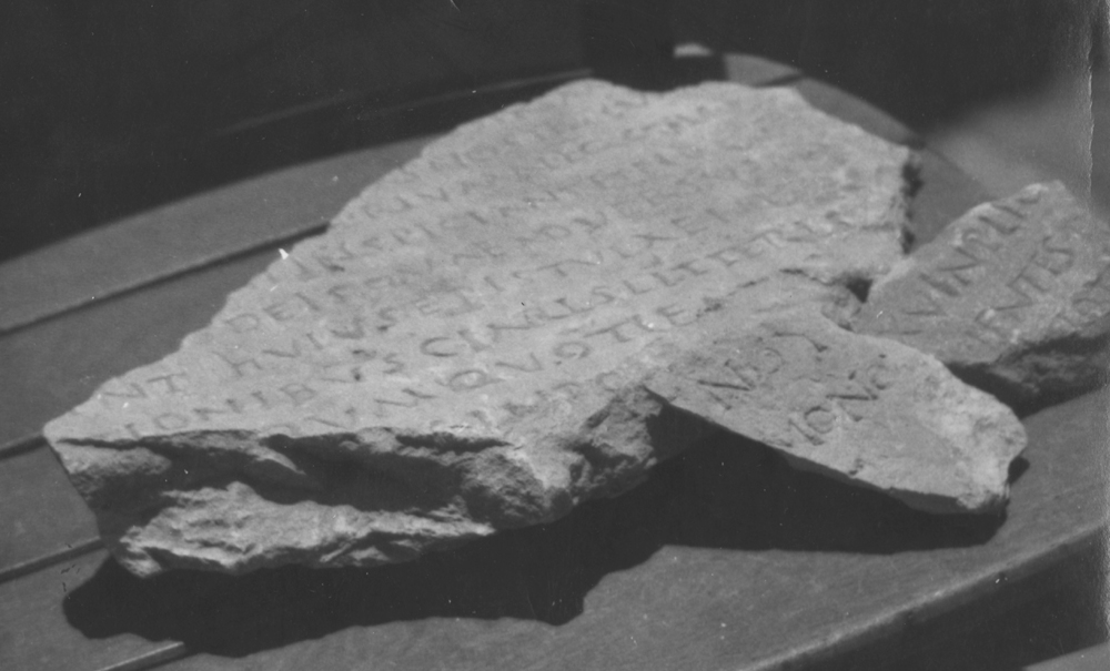Bibliography: Goodchild, 1967, a, b, c, p. 47, fig. I, p. 48, whence AE 1967.533 a-c, whence EDH 015148, EDH 015151, EDH 015154 Reynolds, 1972, 46. Mentioned Kenrick, 2013, 92