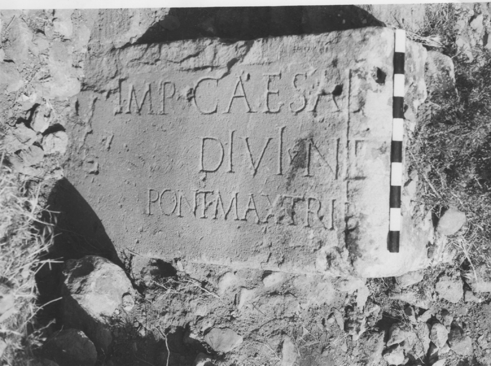 This is probably Hadrian, whose names and titles fit the spacing much better than Trajan's; the text was clearly from a public building and the use of Latin indicates imperial sponsorship so that the imperial name is likely to be in the nominative case.
