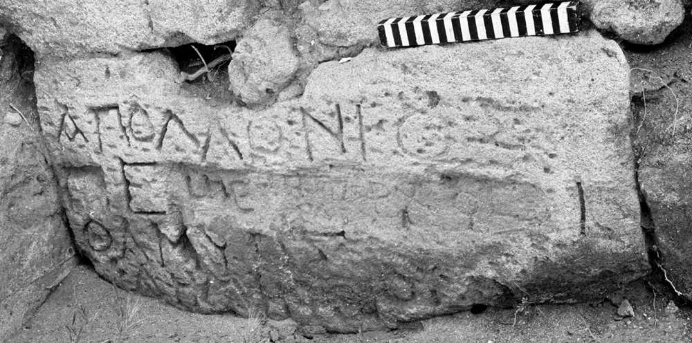 Text: Incised on the face, i above iii. Part of the second line of i was