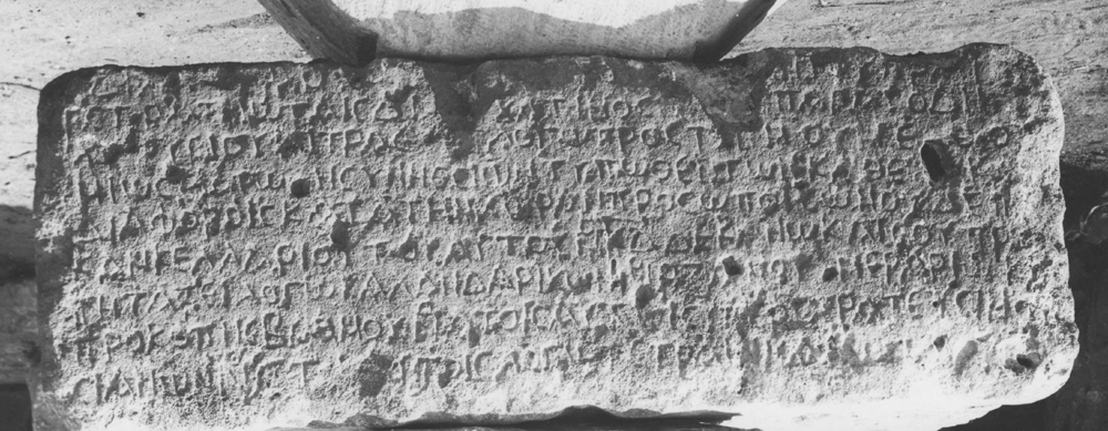 from a wall carrying a copy of the decree of Anastasius, de rebus Libyae Pentapolis denuo constituendis. The surface has